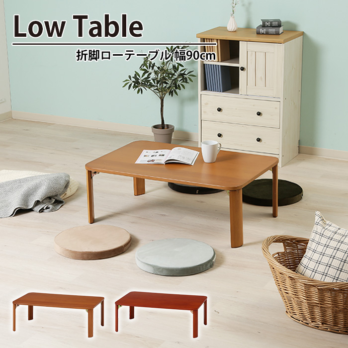 ■【値下げ】折りたたみ テーブル 折れ脚 ローテーブル 幅90 奥行60 高さ32 おしゃれ 天然木 木製 北欧 コンパクト 省スペース 机 折脚ロー