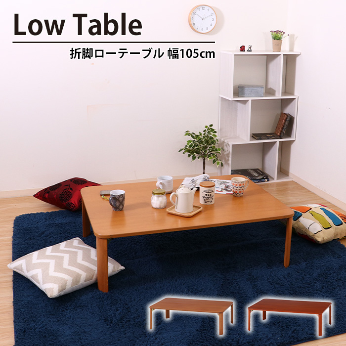■【値下げ】折りたたみ テーブル 折れ脚 ローテーブル 幅105 奥行75 高さ32 おしゃれ 天然木 木製 北欧 コンパクト 省スペース 机 折脚ロ