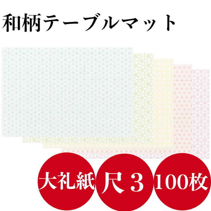 ■九州紙工 テーブルマット ランチョンマット 和風 敷紙 HANAシリーズ 七宝 梅 朝顔 麻の葉 菫 100枚入り 26×38cm 業務用 使い捨て 紙製