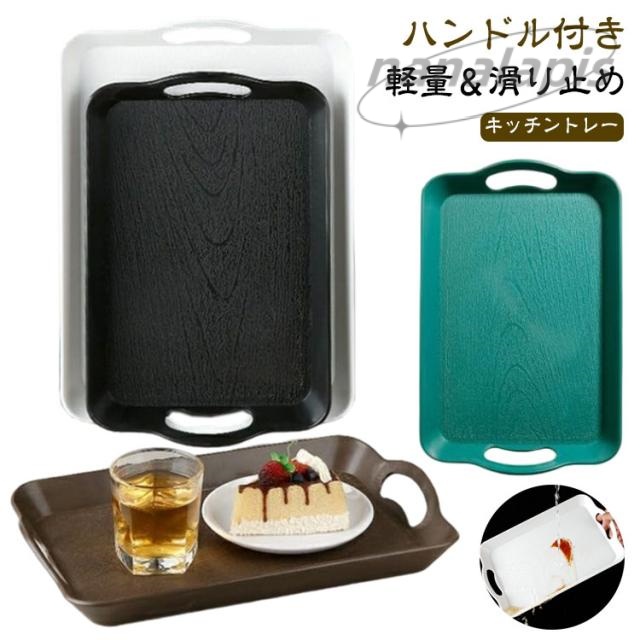 トレー レストラン 【2個セット】和風 カフェ お盆 トレー キッチントレイ プラスチック サービングトレイ 滑り止め ハンドル付き 長方形 パーティー コーヒーテーブル キッチン用 【2個セット】和風 家庭用 お店用 和風 洋風 業務用 ナチュラル シンプル 37×24cm 42×29cm