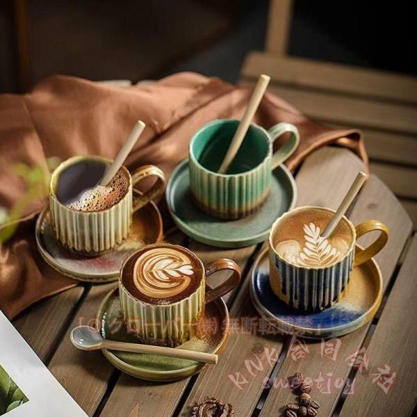 ■コーヒーカップ ソーサー 5客セット おしゃれ 和風 レトロ KNK(株) 窯変 大容量 陶磁器 カフェ お祭り 250ml マグカップ コーヒーマグ 台