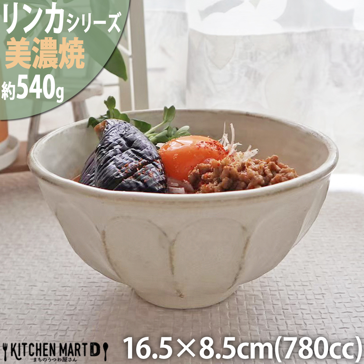 ■リンカ 白 16.5×8.5cm 丼 美濃焼 和食器 カネコ小兵 約540g 780cc 日本製 輪花 rinka ホワイト 白い どんぶり うどん 和風 皿 食器 お