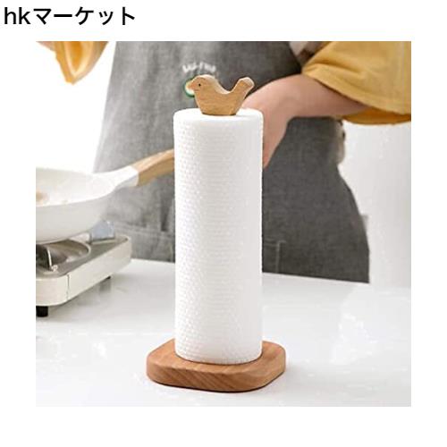 ◆商品名:キッチンペーパーホルダー ペーパー スタンド 木製 ロール紙 縦置き 和風 小鳥 かわいい 滑り止め リッピング キッチン収納 テーブル 浴