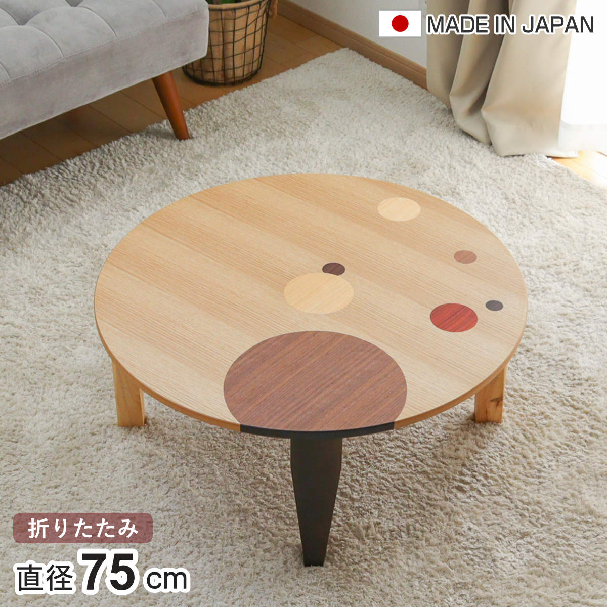 ■ローテーブル 折りたたみ 円型 直径75cm アース ( ナラ 象嵌入り 突板仕上げ 日本製 和風 円卓 ちゃぶ台 テーブル 天然木 木製 折り畳み