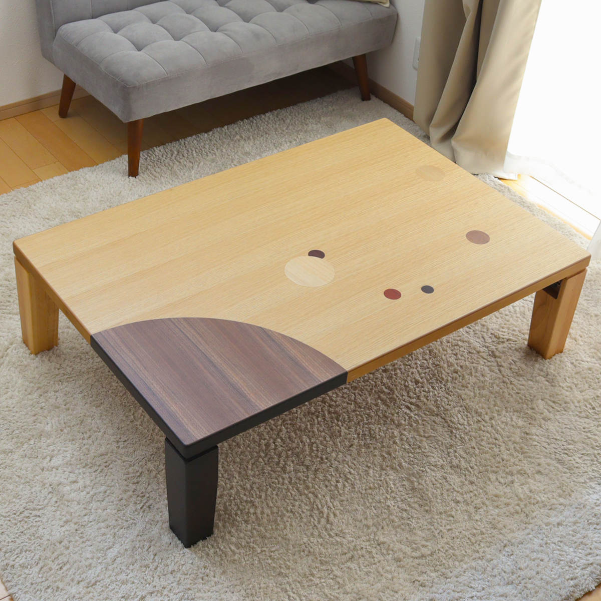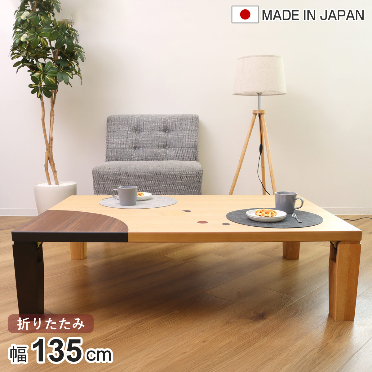 ■ローテーブル 折りたたみ 角型 幅135cm アース ( ナラ 象嵌入り 突板仕上げ 日本製 和風 ちゃぶ台 テーブル 天然木 木製 折り畳み 長方