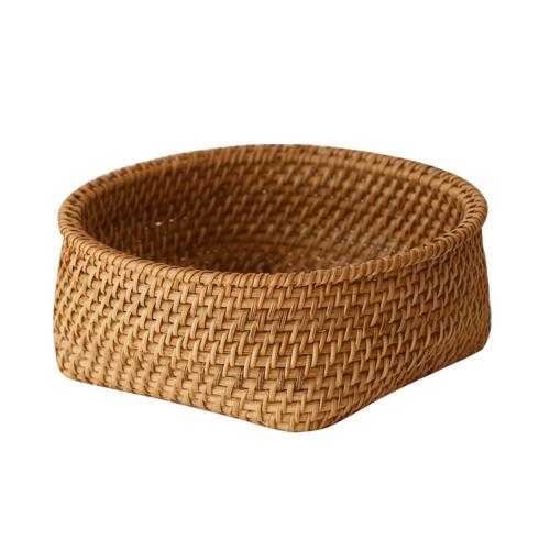 ■Lirancia藤編みかご バスケット ラタン フルーツトレー たまご入り テーブル整理 キッチン収納 お盆 家庭用 可愛い 丸型 和風[S=22×8.5c