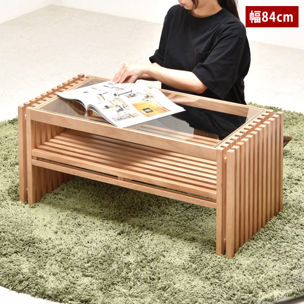 ■センターテーブル 幅84cm 縦格子 ガラス天板 FOREST 棚板 FOCT-840-BB