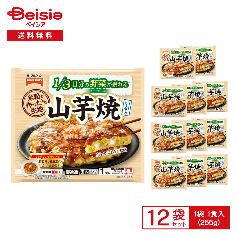 ■テーブルマーク 1/3日分の野菜が摂れる 山芋焼 1枚入(255g)×12袋 冷凍 お好み焼き 山芋焼き 米粉 国産野菜 いか ふわとろ 紙皿入