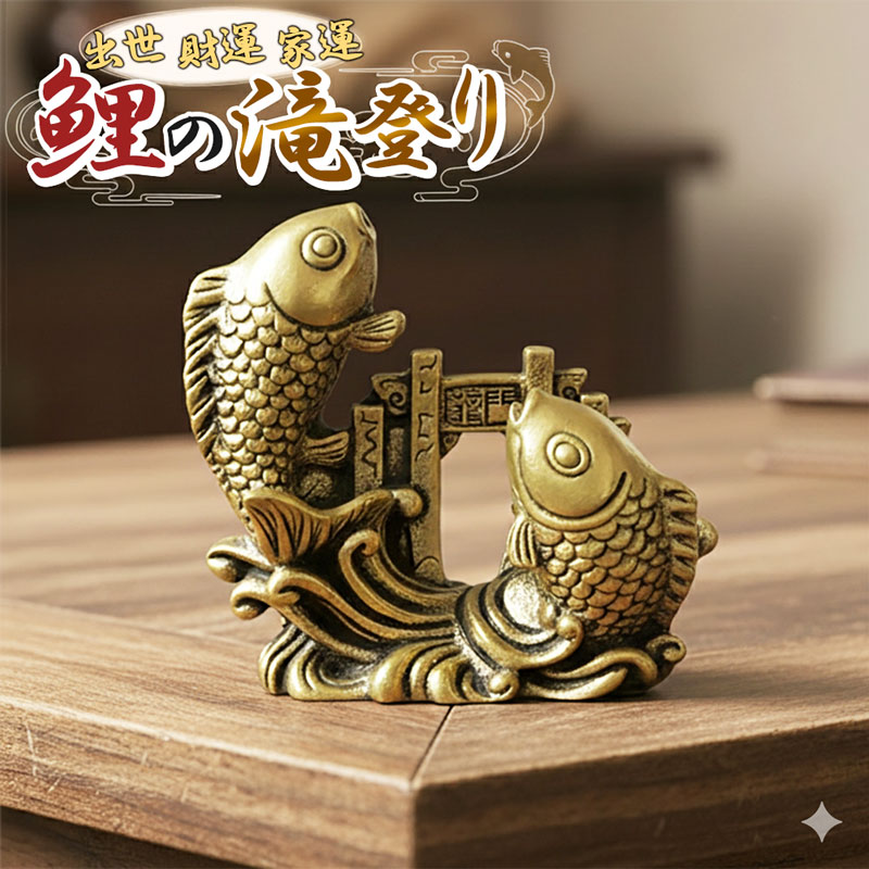 ■送料無料 登竜門 鯉の滝登り 真鍮 置物 インテリア オブジェ 工芸品 模様替え ディスプレイ デコレーション 開運 玄関 風水 アイテム グ