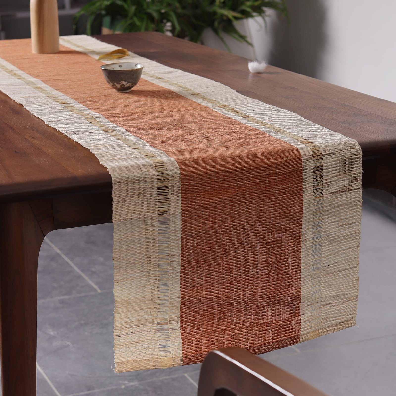 ■【慕布?MOBUKIA】テーブルランナー 手織り布 ちょま生地夏布 天然素材シンプル 素朴なモダン 中華風和風侘寂わびさび禅茶席 断熱テーブル