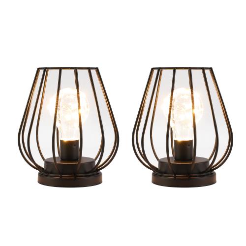 TRIROCKS 二個セット テーブルランプ おしゃれ 電池式ランプ 高さ21cm 置き型 デスクライト おしゃれ 間接照明 メタル 装飾ランプ アンティク 屋内外 オフイス 和風玄関 バーなど インテリア 誕生日 結婚式 パーティー イベント クリスマス プレゼント(ブラック)