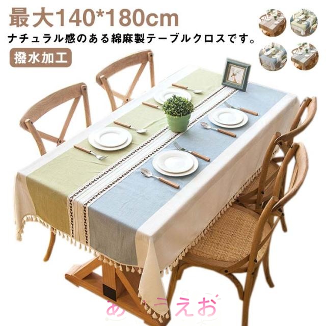 テーブルクロス リネン 布 撥水 配色 おしゃれ テーブルマット 角形 綿麻混 ナチュラル タッセル 付き ダイニングテーブルマット 食卓 デスクマット 長方形 食卓カバー テーブルカバー 防水 耐熱 汚れ防止 傷防止 キズ防止 和風 シンプル