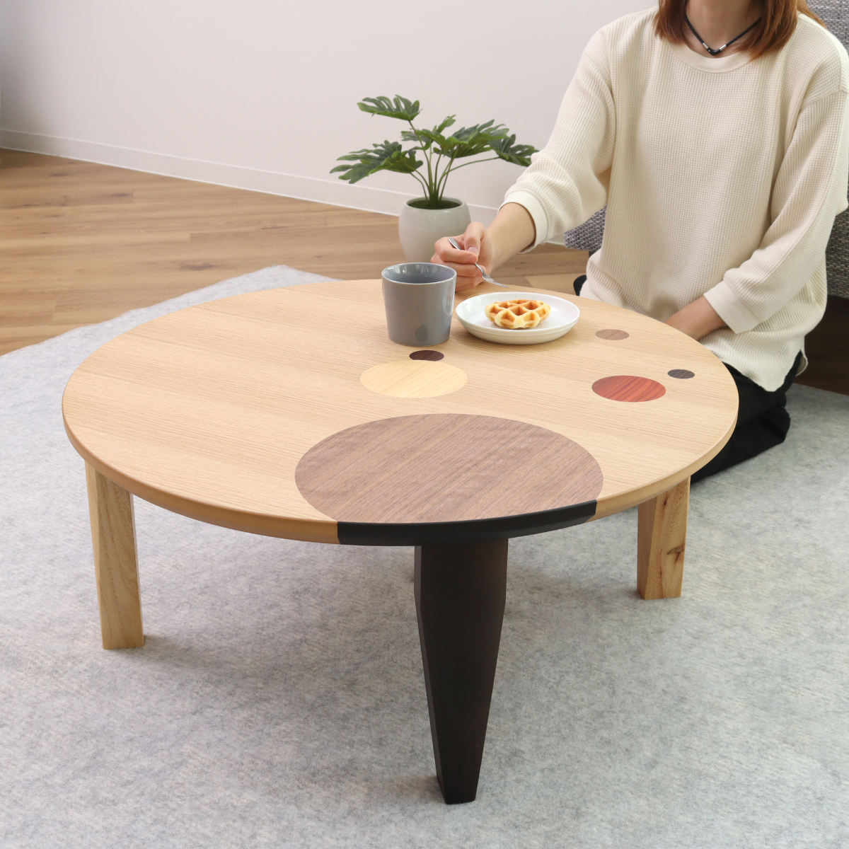 ■ローテーブル 折りたたみ 円型 直径75cm アース ( ナラ 象嵌入り 突板仕上げ 日本製 和風 円卓 ちゃぶ台 テーブル 天然木 木製 折り畳み