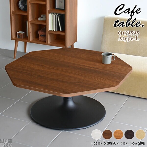 ■テーブル カフェテーブル 2人 ローテーブル おしゃれ 木目 リビング カフェ 机 シンプル ロー 北欧 木製 八角形 CT-OG9595 Atype-L脚 《
