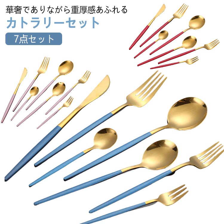 ■カトラリーセット 7点セット スプーン ナイフ フォーク 北欧 おしゃれ 光沢 シンプル ステンレス カトラリー 食器 セット テーブル ディ