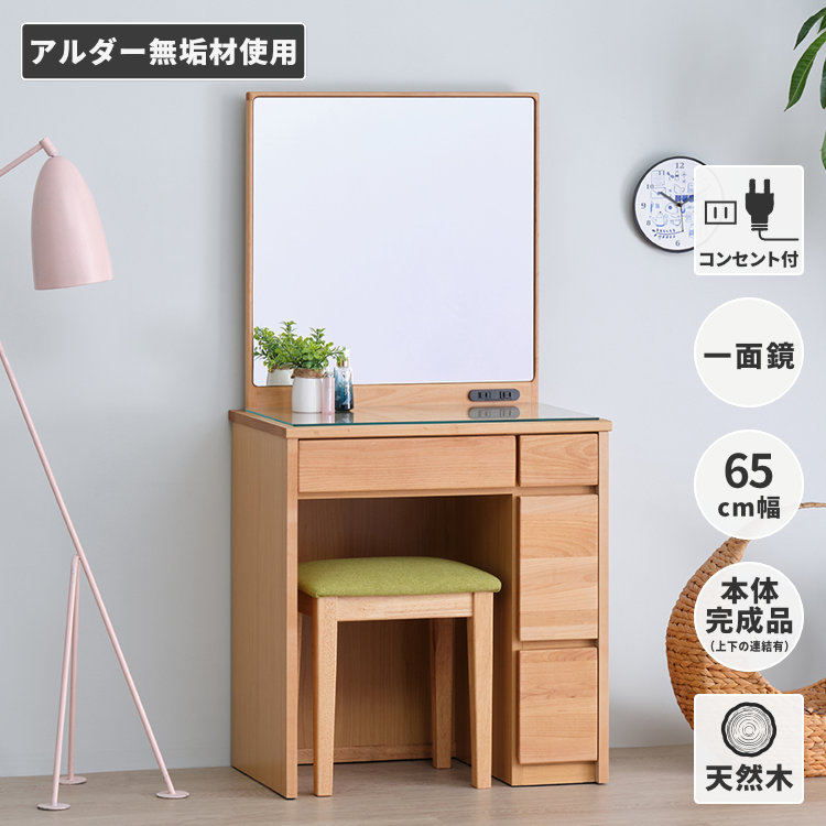 ドレッサー コンパクト 毎朝のメイクタイムをもっと快適にしたい、幅65cmのコンパクトな一面鏡ドレッサーです。お部屋のインテリアに合わせやすい北欧テイストのシンプルなデザインです。