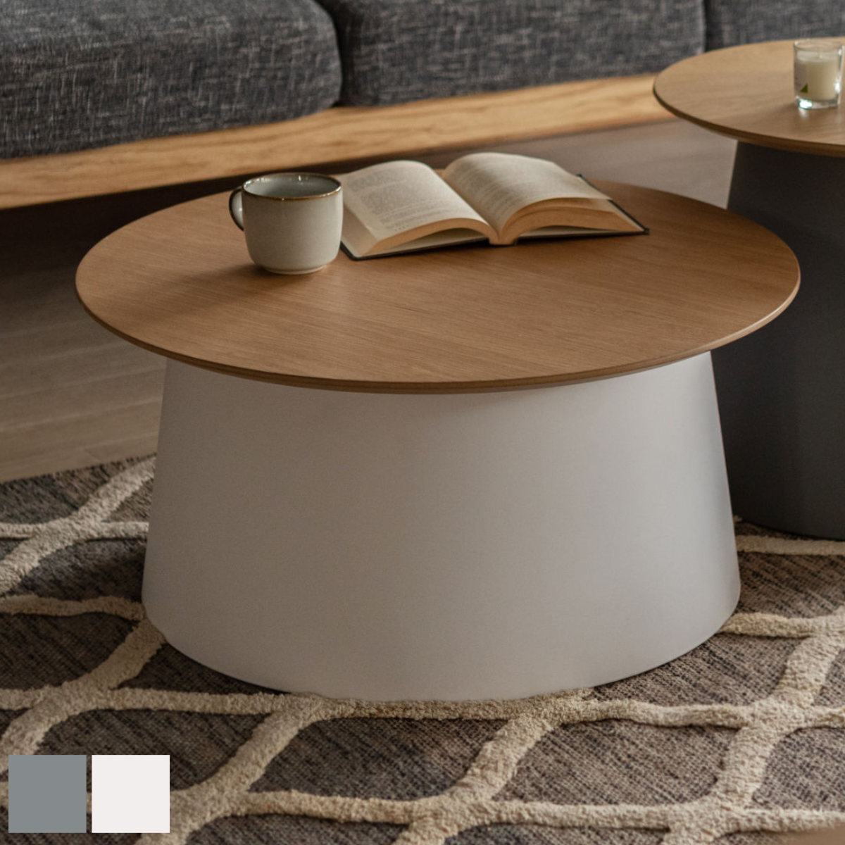 お部屋をモダンに演出するセカンドサイドテーブル45真っ白なホワイト天板にブラックの脚の組み合わせ、メリハリのある都会的な佇まい。天板のフチは物が転がり落ちにくく実用的な形状、脚はすっきりとした印象で抜け感を演出。ソファ・ベッド横、床に座っても手が届きやすい高さで、スマホやカップ、リモコンなどちょっと置きたい場所に気軽に置けます。使わない時はたたんでしまえる折りたたみタイプ。同シリーズと組み合わせてネストテーブルとしてもお使いいただけます。キーワード: テーブル サイドテーブル 折りたたみ式 円形 幅45 ラウンドテーブル 丸テーブル シンプル フチ付き ゴムカバー付き モダン 折りたたみテーブル ローテーブル ミニテーブル 円形テーブル 飾り台 作業台 折れ脚 折り畳み 省スペース コンパクト ソファサイド ベッドサイド ワンルーム リビング 寝室 白 ホワイト
