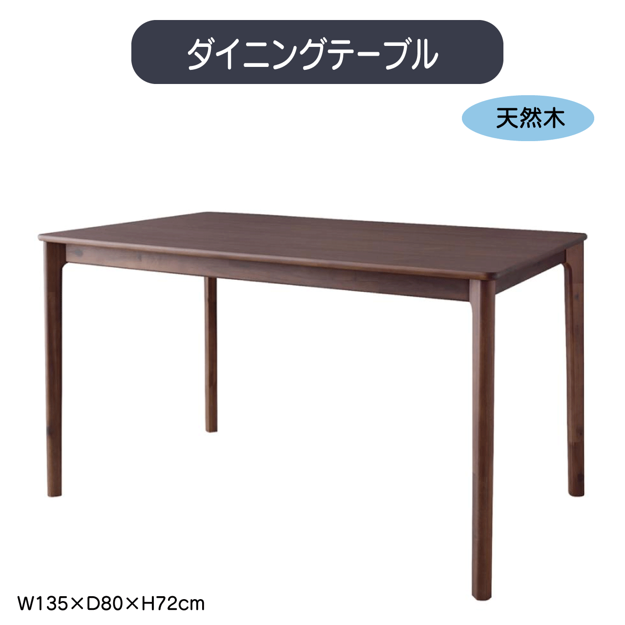 ■ダイニングテーブル W135×D80×H72cm テーブル 食卓机 北欧 おしゃれ シンプル ナチュラル 木製 天然木 省スペース 4人掛け 送料無料