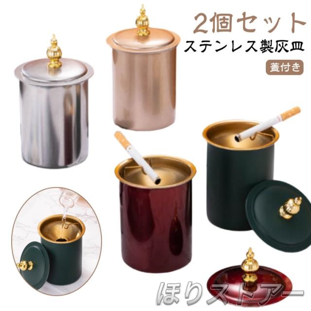 ■火消し ステンレス テーブル 大容量 4カラー 車用灰皿 蓋付き 【2個セット】灰皿 灰皿 遮煙 携帯式 ホーム 屋内 シンプル 卓上 父の日 カ
