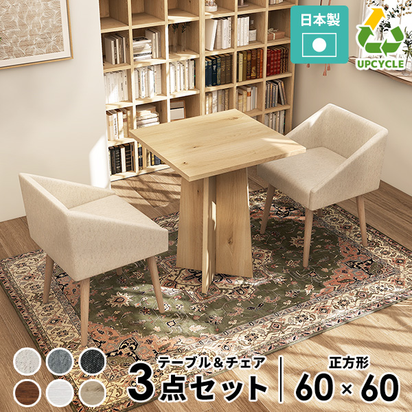 サイズ:【チェア】約幅485 奥行460 高さ680 mm座面高さ: 450 mm脚の高さ: 350 mm【テーブル】約幅600 奥行600 高さ720 mm材質:【チェア】[張地]ポリエステル48%、綿32%、アクリル20%[中材]ウレタンフォーム[脚]ラバーウッド、無塗装【テーブル】[天板・脚]強化紙化粧合板 [裏側]プリント化粧合板カラー:3色×3色※閲覧環境によって、実際の色と異なって見える場合がございます。【チェア】日本製完成品床キズ防止フェルト付きカバーの取り外し不可洗濯・クリーニング不可【テーブル】耐荷重:約30kg日本製お客様組み立てドライバー付属ブランド:arne送料無料※離島は送料別途お見積もり。配送について:玄関先(建物入り口または1階)での受け渡し。エレベーターがある場合は玄関まで。搬入時、お手伝いをお願いする場合がございます。※こちらの商品はチェア2脚とテーブルのセット販売です。