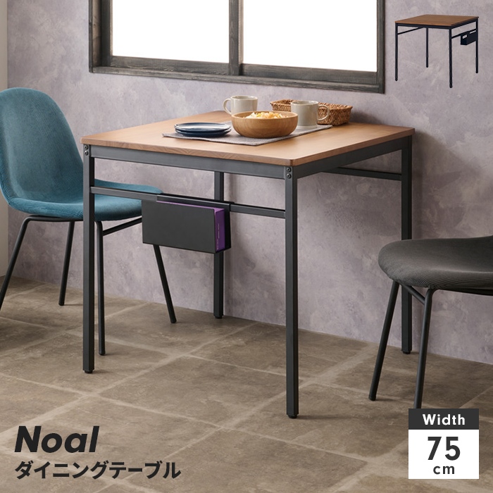 ■【値下げ】ダイニングテーブル 単品 テーブル 幅75 正方形 2人掛け ティッシュポケット付き 木目調天板 スチール脚 カフェ風 シンプル