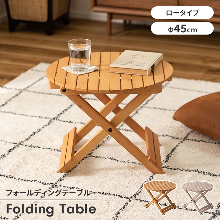 ■【値下げ】テーブル フォールディングテーブル ローテーブル ミニテーブル Φ45 コンパクト 丸型 折り畳み 木製 ナチュラル シンプル