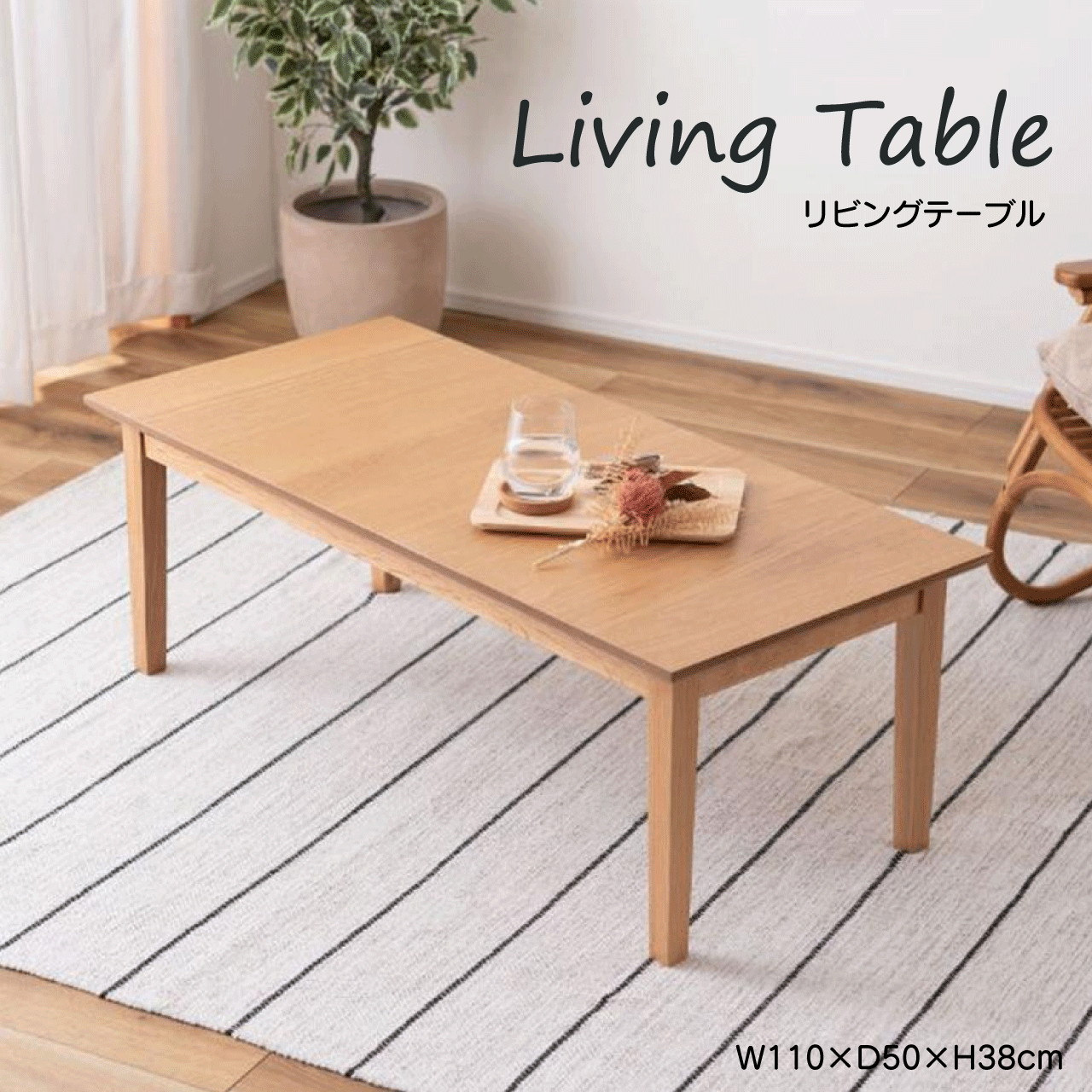 ■リビングテーブル テーブル ローテーブル センターテーブル 北欧 W110×D50×H38cm 木製 天然木 突板 ナチュラル シンプル 長方形 一人暮