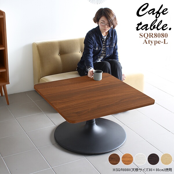■テーブル カフェ ナチュラル リビング ローテーブル 正方形 机 シンプル カフェテーブル おしゃれ 木製 2人用 角丸 CT-SQR8080 Atype-L脚