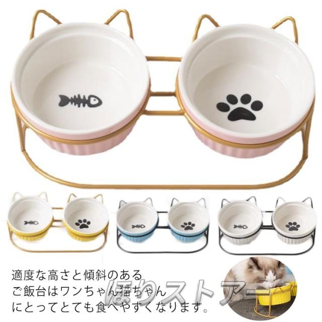 ペット用食器 ペットフードボウルスタンドセット 餌台 餌皿 猫耳 スタンド テーブル 食器台 食器 フードボール フードテーブル 餌 水入れ 餌入れ ご飯 猫 ネコ 犬 ペット 陶器 金属 シンプル おしゃれ