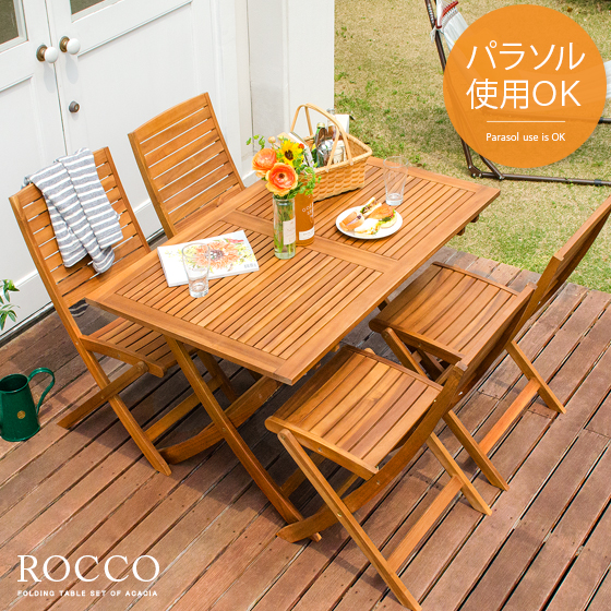 ■ガーデン テーブル エクステリア カフェ風 テラス バルコニー 5点セット シンプル 天然木材 レジャー アウトドア ROCCO〔ロッコ〕5点セッ