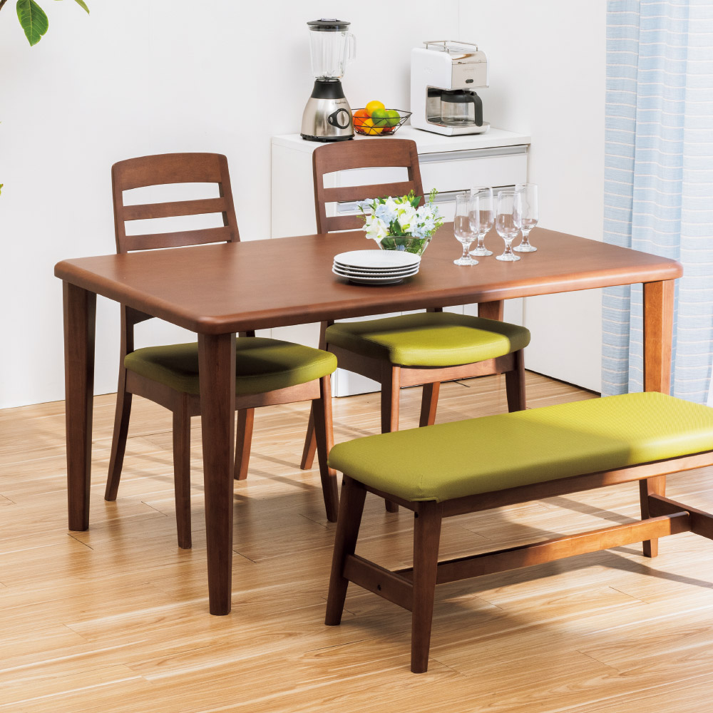 やさしくカーブを描いた天然木の角丸仕上げが特徴の「角丸優しいダイニングシリーズ」。小さなお子様やご年配の方まで、家族みんなが使いやすい配慮が詰まったダイニングシリーズです。長い期間ご使用いただけるよう丈夫な設計になっています。豊富なバリエーションによる組み合わせで、様々な暮らしのシーンに寄り添います。こちらの商品は定番の4本脚タイプです。安定感が良く、飽きのこないシンプルなデザインです。