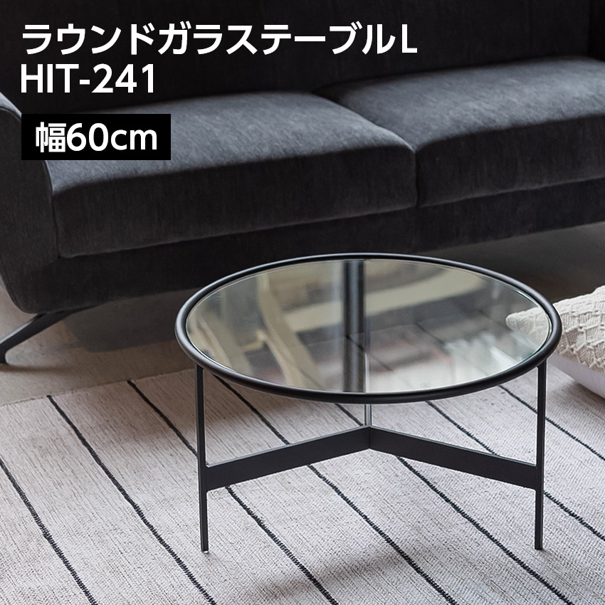 ■ラウンド ガラス テーブル LL ブラック W75×D75×H33 円形 ガラステーブル センターテーブル ラウンドテーブル ガラス アイアン インダ