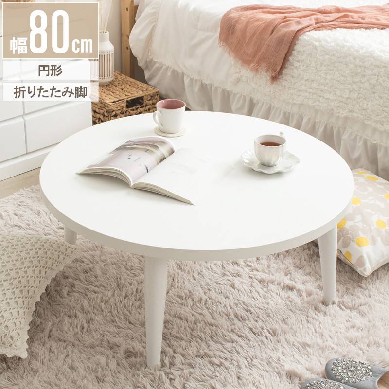 丸みのある優しいフォルムと明るいホワイトカラーが、空間にやわらかい雰囲気を生み出す円形ローテーブルです。 天板は直径80cmとやや大きめのサイズで、天板の上が広く使えて便利。 家族や友人とテーブルを囲めば、絶妙な距離感で自然とお互いの顔が見え会話も弾みます。 シンプルながら厚みのある天板にハの字脚デザインは、モダンで高級感も演出。 白で統一されたカラーリングには清潔感があり、北欧インテリアや韓国インテリアなどとコーディネイトしやすいのも嬉しいですね。 リビングの主役はもちろん、新生活や一人暮らしのテーブルとしてもおすすめです。
