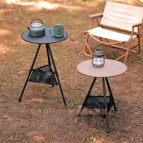 ■キャンプ テーブル 丸サイドテーブル 丸テーブル 軽量 ナイトテーブル ベッドサイドテーブル 折りたたみ 高さ自由調整 アウトドアおりた