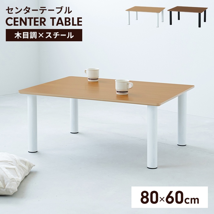 ■【値下げ】センターテーブル テーブル ローテーブル 80×60 座卓 長方形 木目調天板 スチール脚 ナチュラル モダン おしゃれ 北欧風