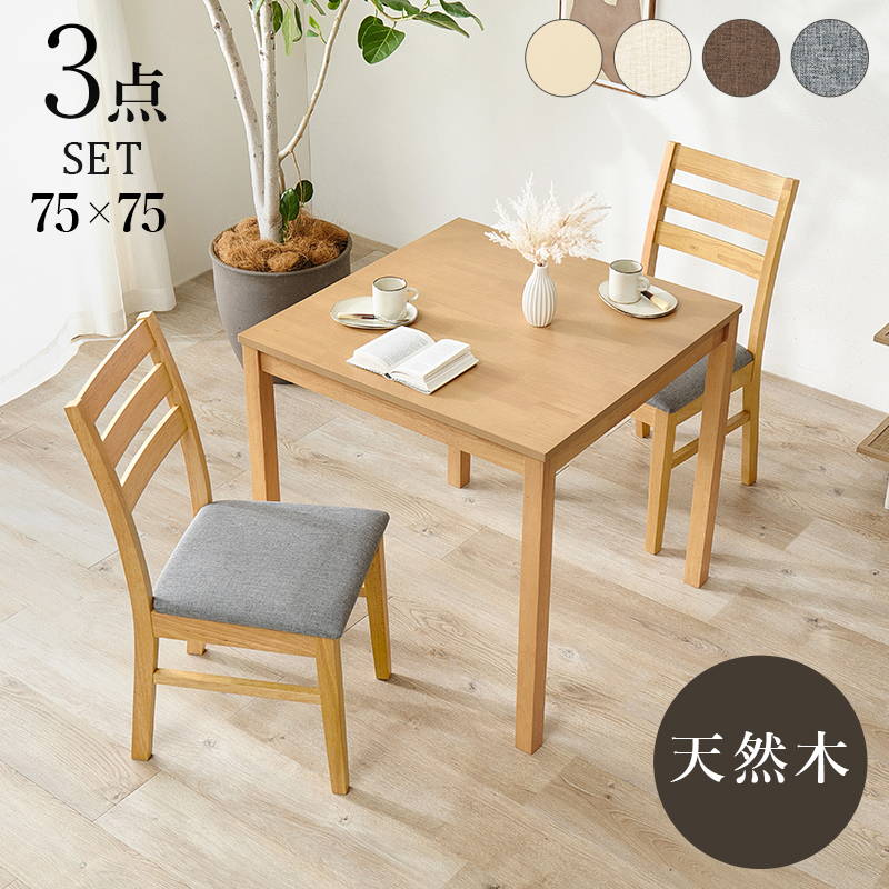 ■ダイニングテーブル 2人用 3点セット 木製 天然木 正方形 コンパクトサイズ テーブル75x75cm チェア2脚