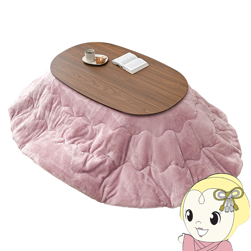 ■こたつ+うす掛け布団 2点セット アウロラ100メレンゲ AURORA100MERENGE こたつ テーブル こたつ布団 幅100cm 楕円型 ブラウン/ピンク