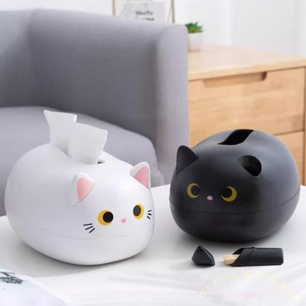 ■猫柄ティッシュケース 収納付き コンパクト 多機能 Welina(株) テーブル リビング 小物入れ インテリア雑貨 かわいい おしゃれ ペーパ