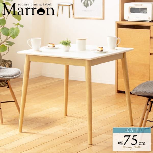 ■ダイニングテーブル 単品 幅75cm 正方形 1人 2人 コンパクト テーブル 角丸 白 ホワイト バイカラー 北欧 おしゃれ かわいい 可愛い 木