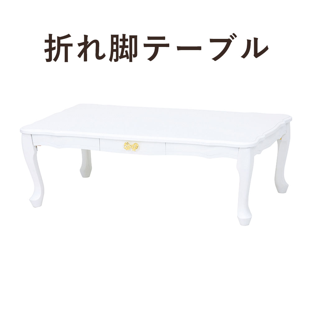 ■WHITE TABLE 折れ脚テーブル (テーブル 折れ脚 折りたたみ シンプル 猫脚 リボン 上品 引き出し 収納 エレガント ポプラ MDF アンティー