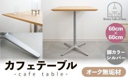 ■【ふるさと納税】60cm×60cmオーク無垢カフェテーブル 脚カラーシルバー【木製 テーブル オーク 無垢材 温かみ 国産 シンプル おしゃれ