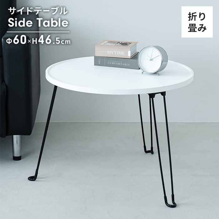 ■【値下げ】テーブル サイドテーブル 折りたたみ式 円形 幅60 ラウンドテーブル 丸テーブル シンプル フチ付き ゴムカバー付き モダン