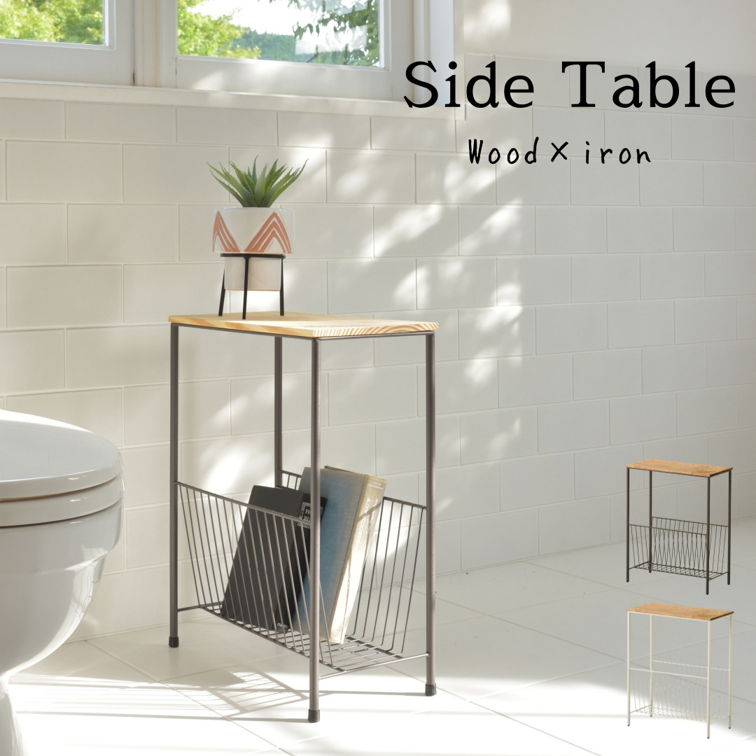 ■サイドテーブル 天然木 アイアンフレーム パイン材 コンパクト シンプル ソファ横 ソファーサイド ベッドサイド テーブル 机 ラック ミニ