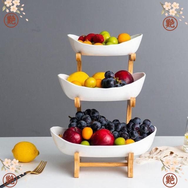 ■送料無料 木製 3段式 フルーツバスケット スナックトレイ 多機能 フルーツボウル テーブル シンプル セラミックス/プラスチック 野菜ラッ