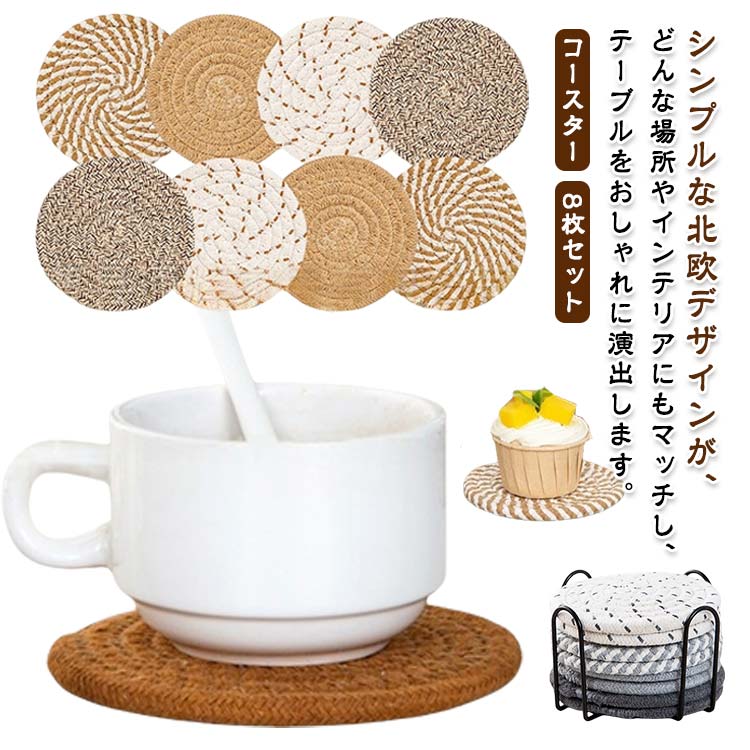 ■シンプル 丸型 北欧 丸 断熱 ラウンド ランチマット コースター 8枚セット オフィス 無地 テーブル パッド 円形 お家カフェ お酒 キッチ