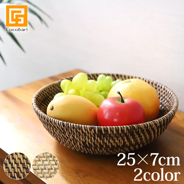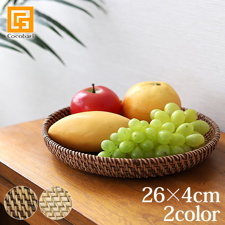 ■ラタンバスケット ラウンド浅型 Mサイズ(26×4cm) アジアン バリ リゾート ラタン 籐 南国リゾート ナチュラル テーブルウェア 自然素材