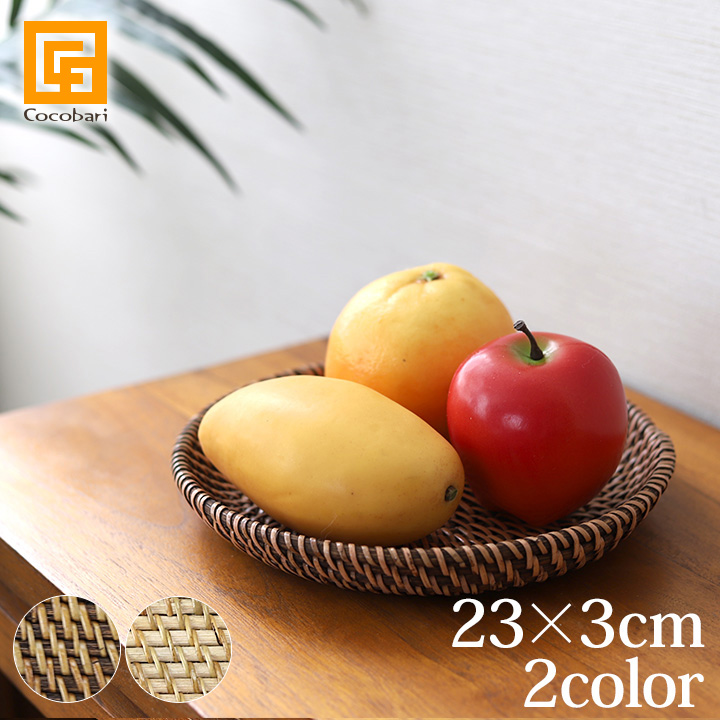 ■ラタンバスケット ラウンド浅型 Sサイズ(23×3cm) アジアン バリ リゾート ラタン 籐 南国リゾート ナチュラル テーブルウェア 自然素材