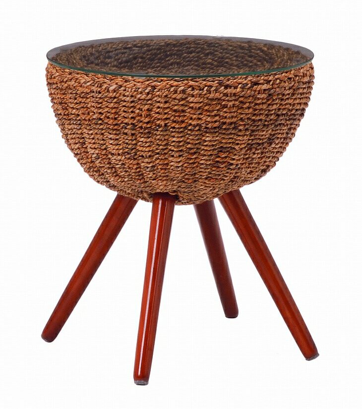丁寧に編みこまれたアバカ素材、アジアンリゾートのような雰囲気が味わえます。天板には強化ガラス使用。