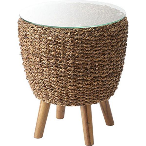 ■アバカ サイドテーブル 約 幅40×奥行40×高さ45cm ガラス天板 アジアンテイスト テーブル ソファテーブル インテリア家具 b04