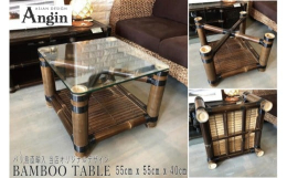 ■【ふるさと納税】【受注生産】バンブーガラステーブル(座卓)55cm,高さ40cm (KDF-26)